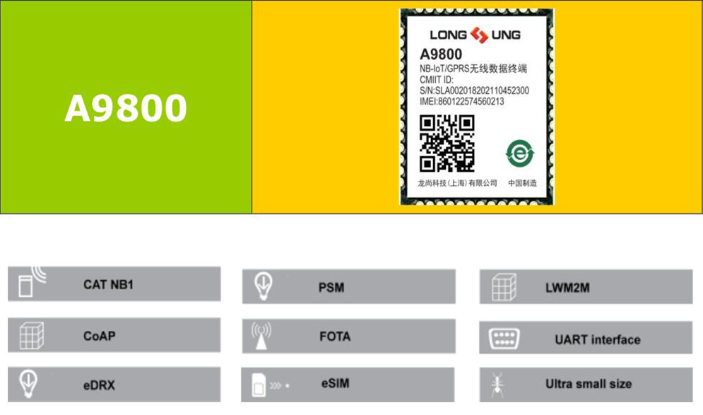 Longsung A9800 is one of the smallest NB-IoT/GPRS modules in LCC castellation packaging with the