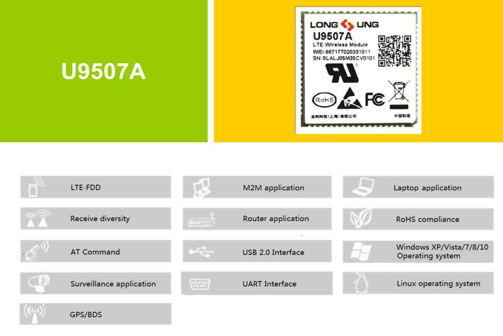 U9507A is a new generation of Longsung LTE wireless module, rich of Internet protocols, and indstry-